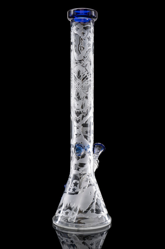 ROOR® Limited Edition 18" Beaker 50mmx5mm with Flat Lip and Base upgrade with Single Color Lip and Sandblast Blue Wolf