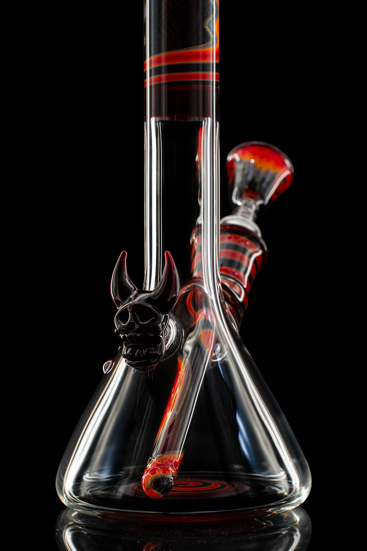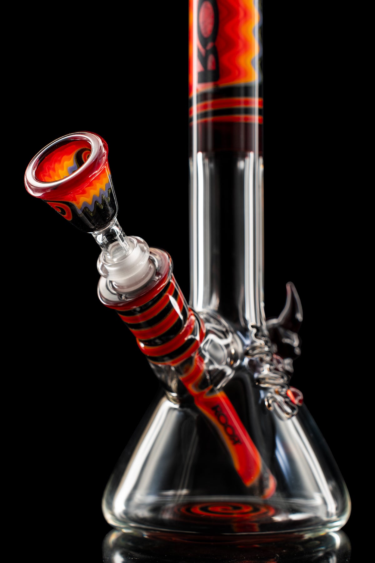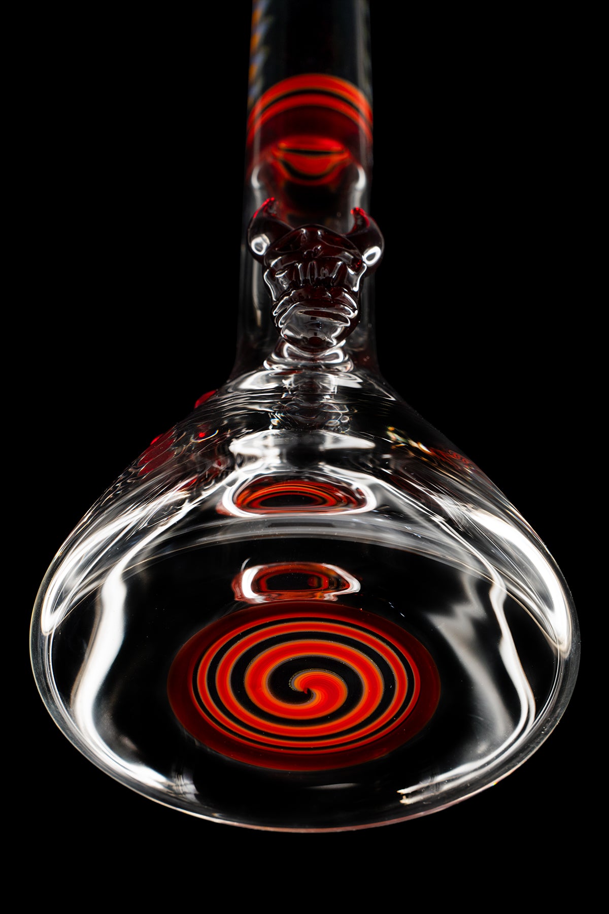 ROOR Custom, One-of-One, Halloween 2025 Limited 10" Tiny Sista featuring Fire Themed Colors (Red, Orange, Yellow, Grey and Black) Worked Section, Solid Color Lip with Matching Worked Bowl and Downstem.